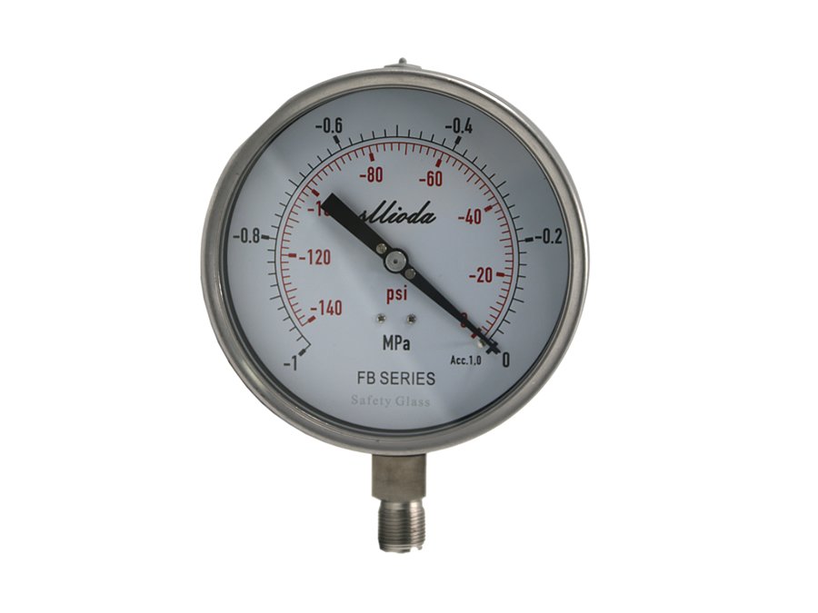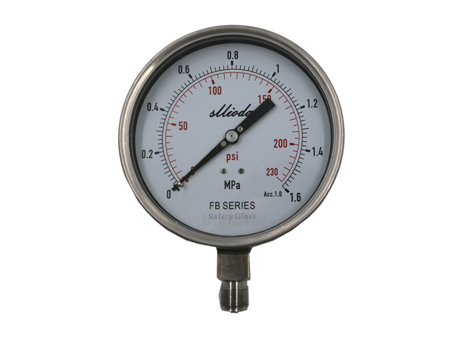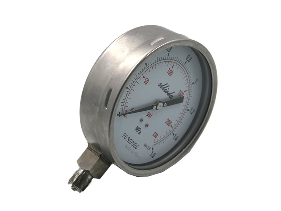 用途:不銹鋼壓力表廣泛應用于石油、化工、化纖、冶金、電站等工業部門對耐腐蝕、抗振要求較高的工藝流程中測量各種氣體、液體介質的壓力。 外殼為氣密型結構,能有效地保護內部機件免受環境影響和污穢侵入。對于在外殼內充液(一般為硅油或甘油)的儀表,具有抗工作環境振動較劇烈和減少介質壓力脈動影響的作用。 主要技術參數 執行標準:GB/T1226 精確度等級:40、50、60(mm)2.5級; 100、150、200、250(mm)1.6級和1.0級 儀表公稱直徑:40、50、60、100、150、200(mm) 測量范圍:-O.1Mpa~6OMpa(詳見測量范圍和精確度等級對照表) 使用環境溫度(含介質溫度):-25℃~+70℃(表內充液) -40℃~+70℃(表內不充液) 相對濕度不大于80% 溫度影響:≤0.4%/10℃(使用溫度偏離20℃+5℃) 防護等級:IP64 儀表外殼:不銹鋼 測量元件:不銹鋼316L(OOCr17Ni14Mo2) 抗工作環境振動:VH.4(外殼內充液) V.H.3(外殼內不充液)